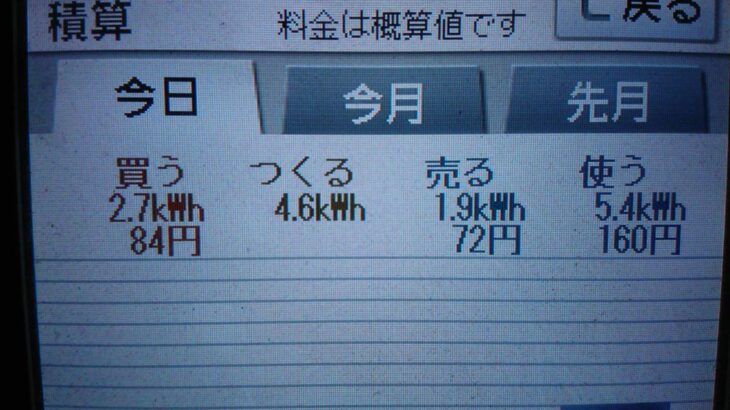 パナソニックHIT240 5kW2019/10/14の太陽光発電量 4.6kWh…