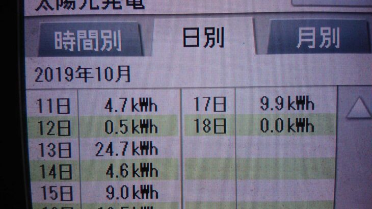 パナソニックHIT240 5kW2019/10/13の太陽光発電量 24.7kW…