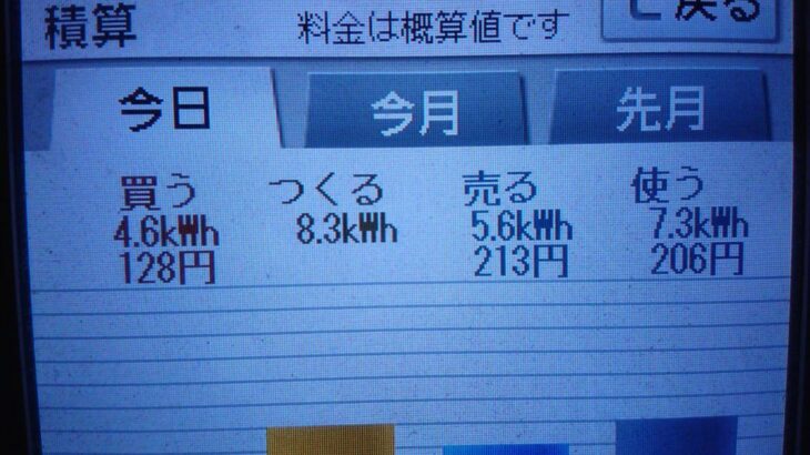 パナソニックHIT240 5kW2019/10/21の太陽光発電量 8.3kWh…