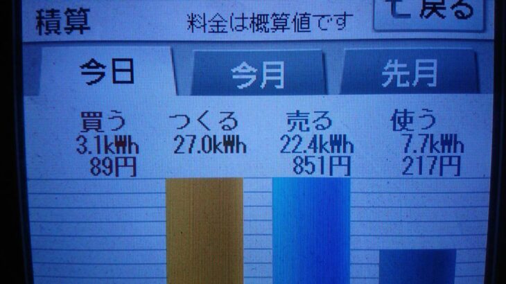 パナソニックHIT240 5kW2019/7/30の太陽光発電量 27.0kWh…