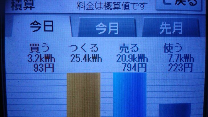パナソニックHIT240 5kW2019/7/31の太陽光発電量 25.4kWh…