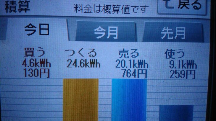 パナソニックHIT240 5kW2019/8/9の太陽光発電量 26.4kWh月…