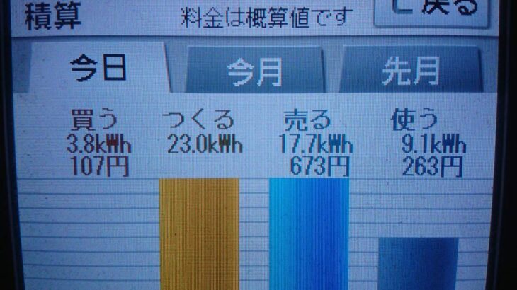 パナソニックHIT240 5kW2019/8/5の太陽光発電量 23.0kWh月…