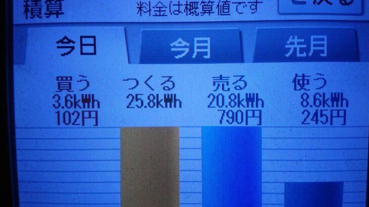 パナソニックHIT240 5kW2019/8/6の太陽光発電量 25.8kWh月…