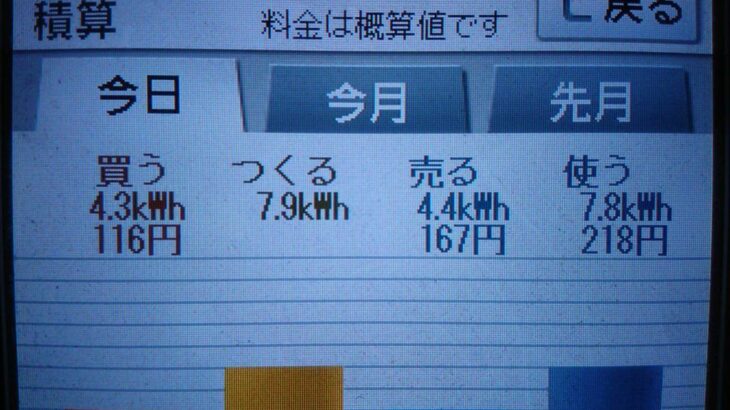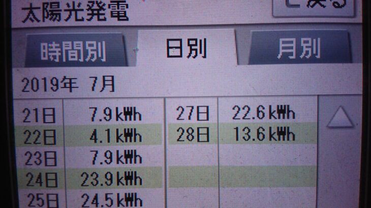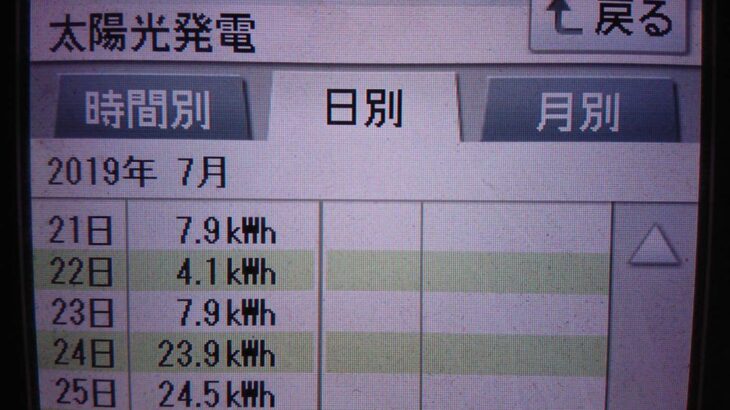 パナソニックHIT240 5kW2019/7/23の太陽光発電量 7.9kWh月…