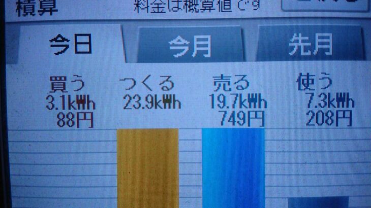 パナソニックHIT240 5kW2019/7/24の太陽光発電量 23.9kWh…
