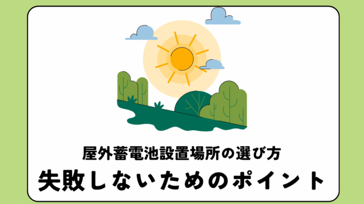 屋外に蓄電池を設置したいけど、どこがいいか迷っているあなたへ。この記事では、屋外…