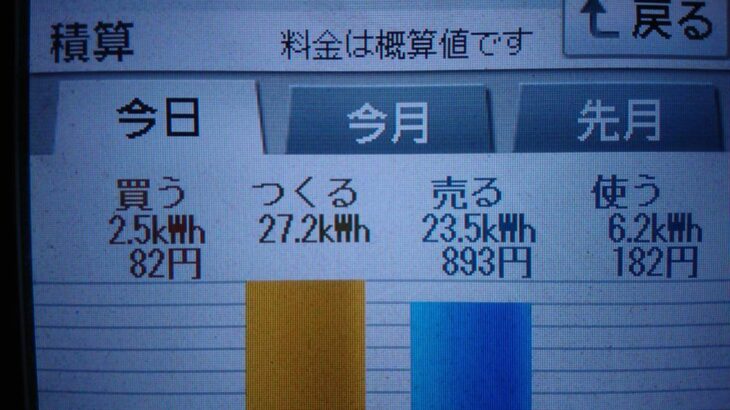 パナソニックHIT240 5kW2019/6/26の太陽光発電量 27.2kWh…