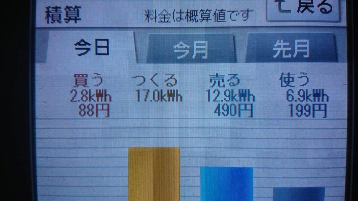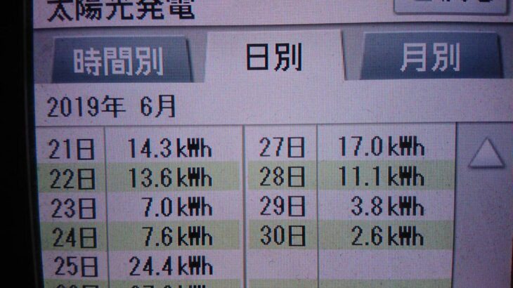 パナソニックHIT240 5kW2019/6/27の太陽光発電量 17.0kWh…