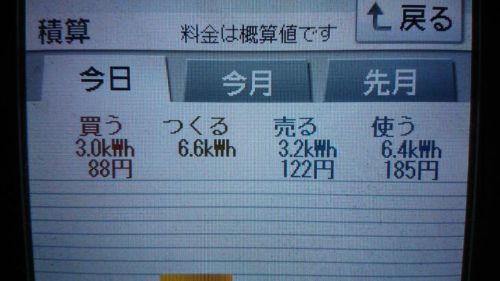 パナソニックHIT240 5kW2019/6/8の太陽光発電量 6.6kWh月次…