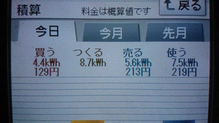 パナソニックHIT240 5kW2019/6/9の太陽光発電量 8.7kWh月次…