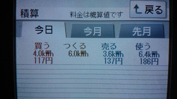 パナソニックHIT240 5kW2019/6/10の太陽光発電量 6.0kWh月…