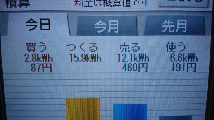 パナソニックHIT240 5kW2019/6/12の太陽光発電量 15.9kWh…