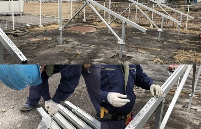 昨日から野立て太陽光発電の設置工事です。昨日で架台が組み終わったので、本日はパネ…