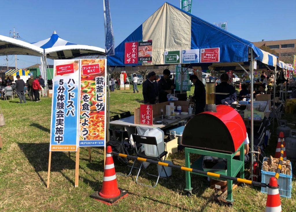 以前、参加したときは、ピザをまき窯で焼いてお出ししたのと、ハンドスパの5分体験会キャンペーンをしておりました。