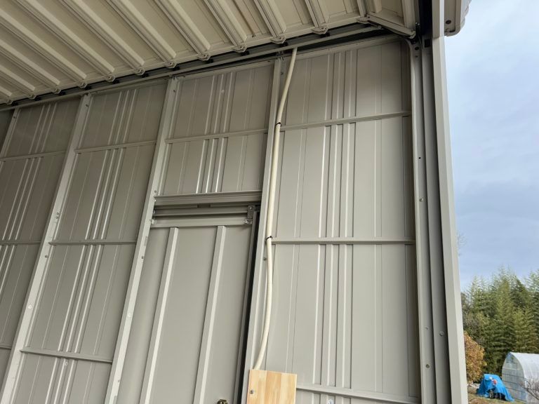 本日は、先週の続きの現場作業に入って、ガレージに太陽光発電システムを設置するための、配線工事などの作業を行っております。