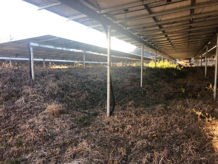 こちらはメガソーラー発電所で、パネルがずらっと並んでおりますが、山の中なので、草木が生い茂り、たどり着くのがとても大変です。