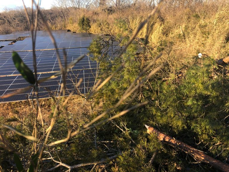 立木や背の高い雑草が影を作り、パネルの発電を妨げてしまうので、こうして点検の折に現場の状況を良く確認する必要があります。