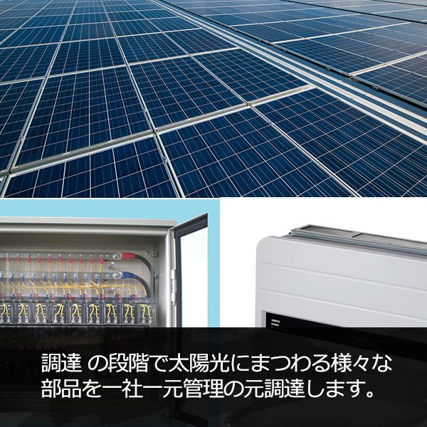 この一元管理は徹底されており、本来個々の会社が請け負うものである架台やパワコン、接続箱/集電箱、ケーブルやモニタリングシステムなど