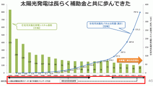 これにより国からの太陽光発電補助金交付は終了しました。それ以降は地方自治体による助成金と蓄電の買取制度が浸透しています。