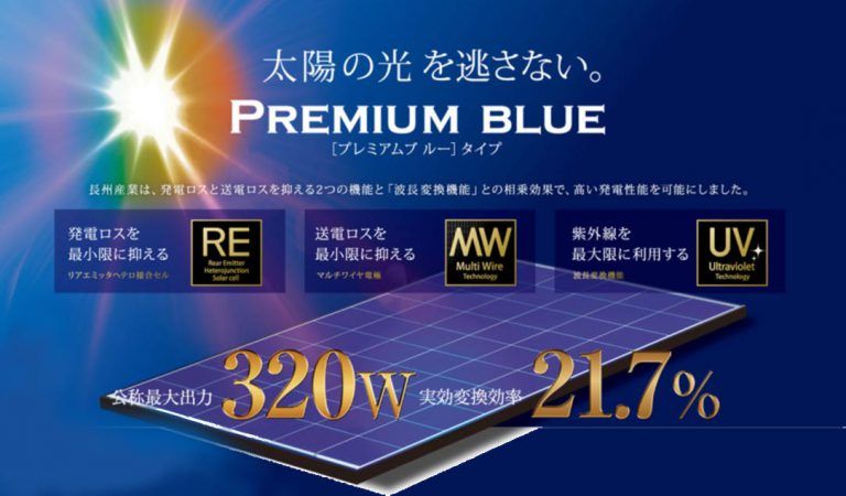 長州産業ではPREMIUM BLUE(プレミアムブルー)と呼ばれる製品を売り出しています。PREMIUM